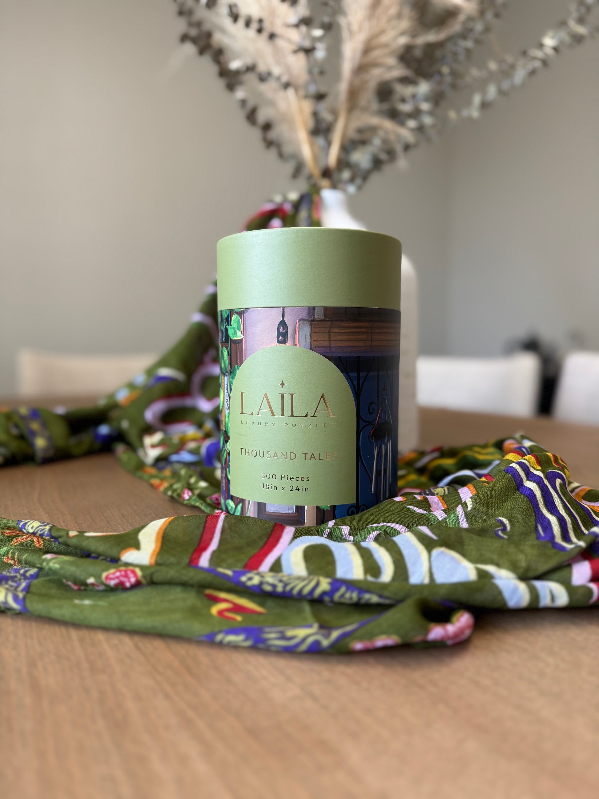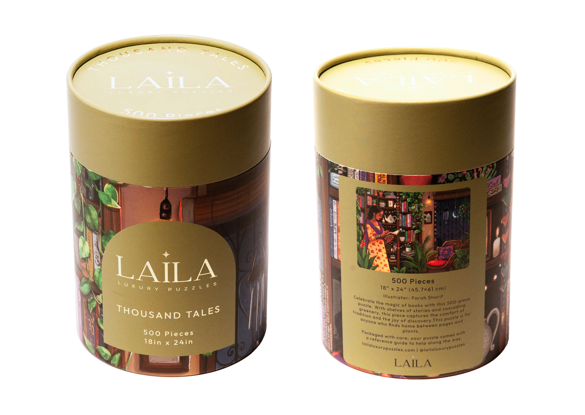 Celebrate the magic of books with this 500-piece puzzle set in a cozy private library. A woman dressed in traditional Pakistani attire, is immersed in her latest read. The shelves around her blend Pakistani classics with American favorites—stories that bridge cultures and generations. Warm, inviting, and richly detailed, this puzzle is perfect for anyone who finds home between pages and loves discovering new worlds through beloved books.